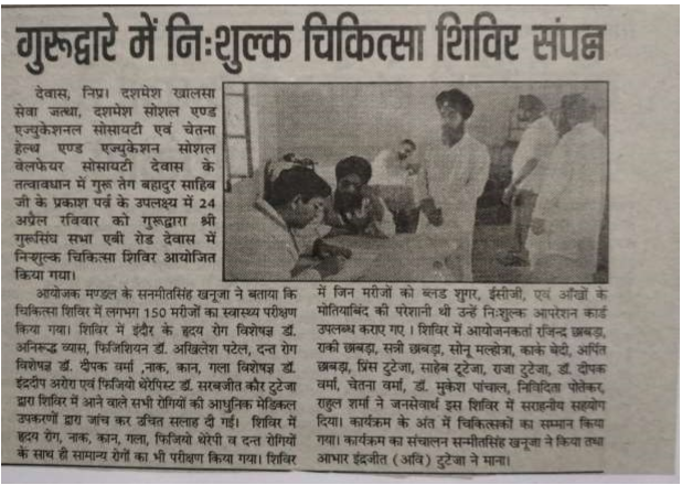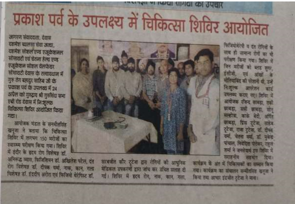 Our Society executed and Medical camp in Gurudwara situated in dewas in which indore cities famous doctor were comes gives their duties in which so many peoples were done their checkups and treatment.